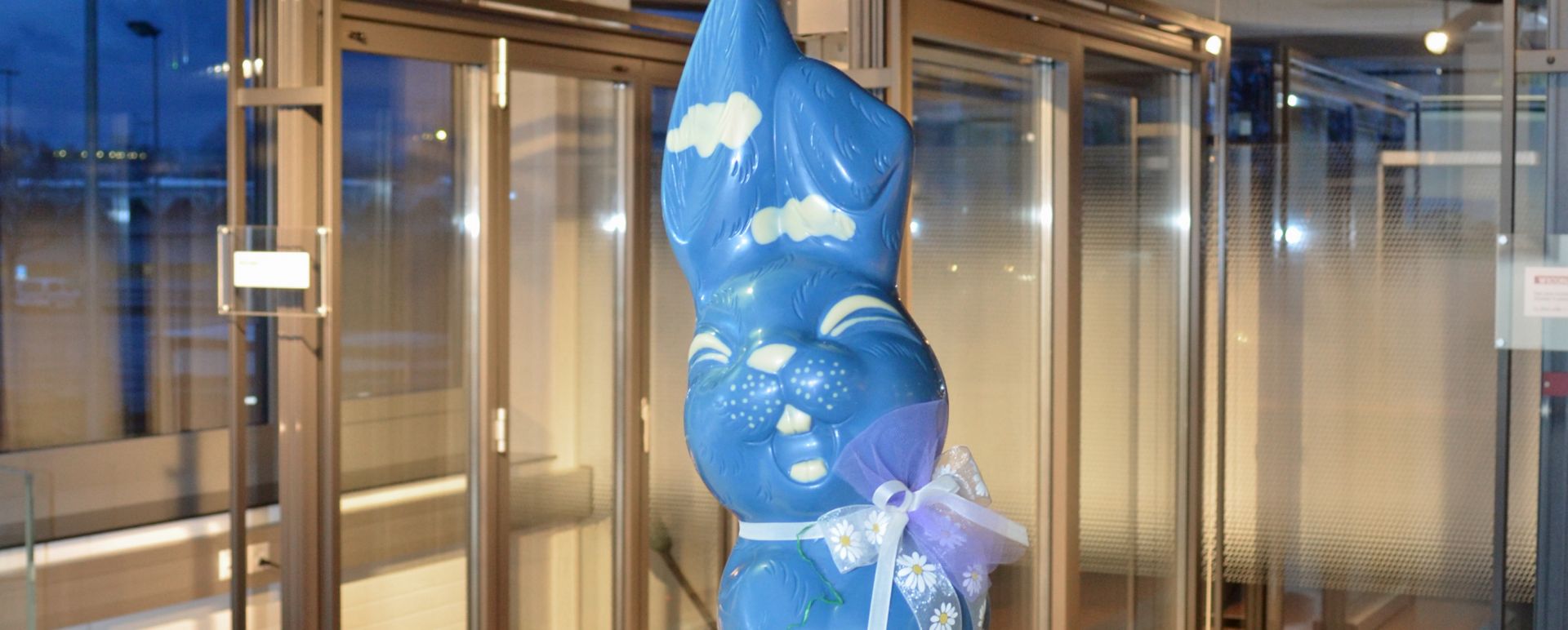 Übrigens: Der blaue Solterhase ist aus feinster Schokolade und wurde durch die Bäckerei-Konditorei Schenk Beck, Unterlangenegg, hergestellt. Damit Du Dich freuen kannst... Der Hase ist ca. 60 cm gross und über 3 Kg schwer...
