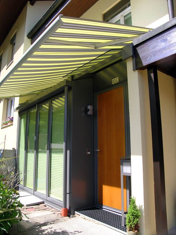 - Eingesetzt werden Dachbeschattungen und Vertikalbeschattungen der Schweizer Marke Stobag